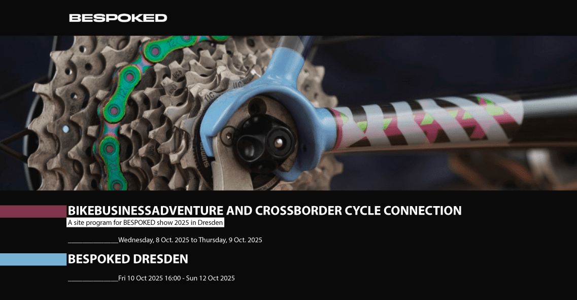 Crossborder Cycle Connection to inicjatywa rozwijana od ubiegłego roku, której celem jest wsparcie producentów i dostawców działających w sektorze rowerowym. Najbliższa edycja odbędzie się w dniach 8–9 października 2025 r. i będzie obejmować spotkania matchmakingowe oraz networkingowe. Wydarzenie stanowi część programu towarzyszącego targom BESPOKED, które po raz trzeci odbędą się w Dreźnie w dniach 10–12 października 2025 r.