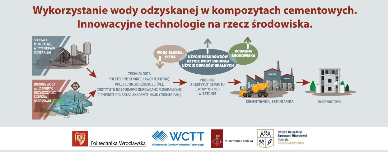 W projekcie „Wykorzystanie wody odzyskanej w kompozytach cementowych. Innowacyjne technologie na rzecz środowiska” rozwijane są zaawansowane metody oczyszczania ścieków komunalnych, przemysłowych oraz wód deszczowych (m.in. katalityczne ozonowanie i fotokataliza), które pozwalają na ich ponowne zastosowanie w betonie – bez utraty jego kluczowych właściwości mechanicznych.