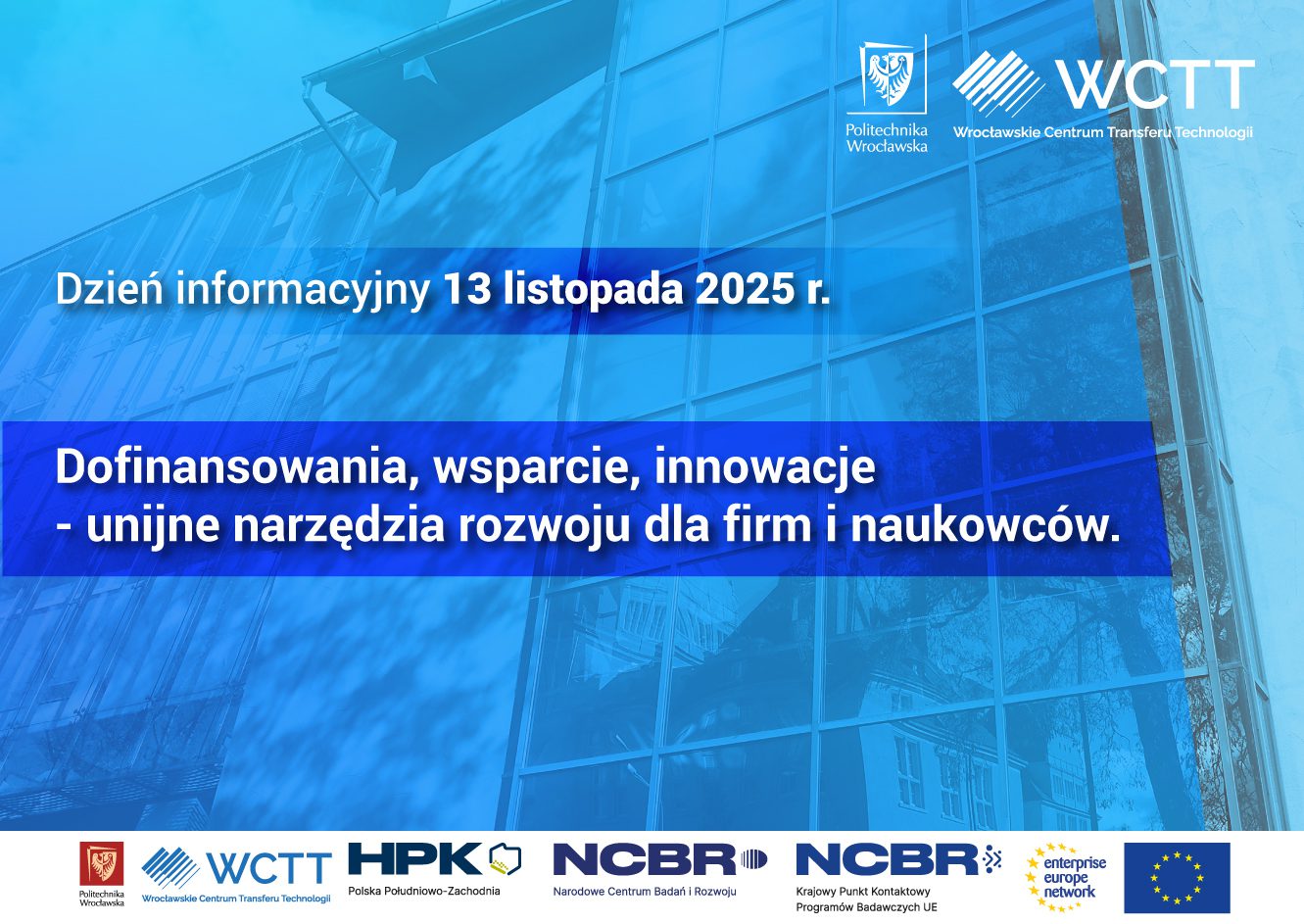 [:pl]Serdecznie zapraszamy na Dzień informacyjny do Wrocławskiego Centrum Transferu Technologii Politechniki Wrocławskiej, organizowany z Horyzontalnym Punktem Kontaktowym Polska Południowo-Zachodnia (HPK PPZ) oraz Enterprise Europe Network (EEN), przy udziale Głównego Punktu Informacyjnego Funduszy Europejskich (PIFE).[:]