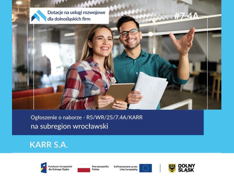Na prośbę naszego Partnera informujemy o rozpoczęciu naboru oraz wprowadzonych zmianach w dokumentacji projektu „Dotacje na usługi rozwojowe dla dolnośląskich firm”. Karkonoska Agencja Rozwoju Regionalnego S.A. ma przyjemność poinformować, że od 6 grudnia 2025 r. można składać wnioski w ramach tego przedsięwzięcia. Nabór skierowany jest do mikro, małych, średnich oraz dużych przedsiębiorstw prowadzących działalność gospodarczą na obszarze subregionu wrocławskiego.