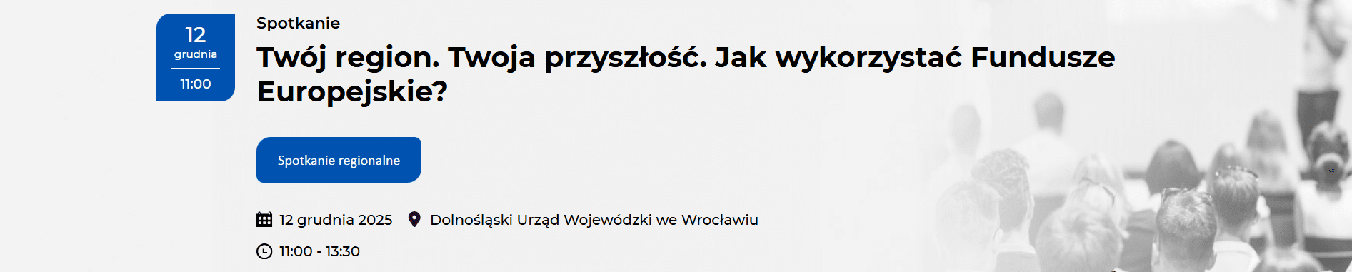 W imieniu naszego partnera – Polskiej Agencji Rozwoju Przedsiębiorczości – serdecznie zapraszamy na ostatnie w tym roku regionalne spotkanie „Twój region. Twoja przyszłość. Jak wykorzystać fundusze europejskie?”, które odbędzie się 12 grudnia br. we Wrocławiu w Dolnośląskim Urzędzie Wojewódzkim.
