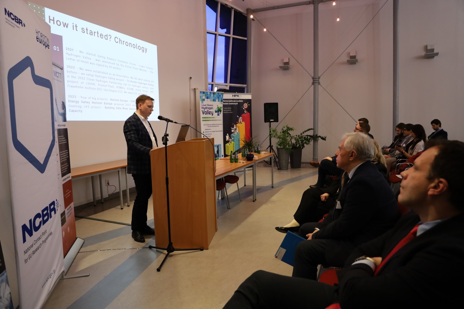 Serdecznie dziękujemy za liczny udział w Krajowym Dniu Informacyjnym poświęconym konkursom w obszarze technologii wodorowych, który odbył się w gościnnych murach Wrocławskiego Centrum Transferu Technologii Politechniki Wrocławskiej. Wydarzenie zostało zorganizowane przez Narodowe Centrum Badań i Rozwoju we współpracy z Horyzontalnym Punktem Kontaktowym Polska Południowo-Zachodnia oraz Stowarzyszeniem Dolnośląska Dolina Wodorowa, zgromadziło blisko 140 uczestników.