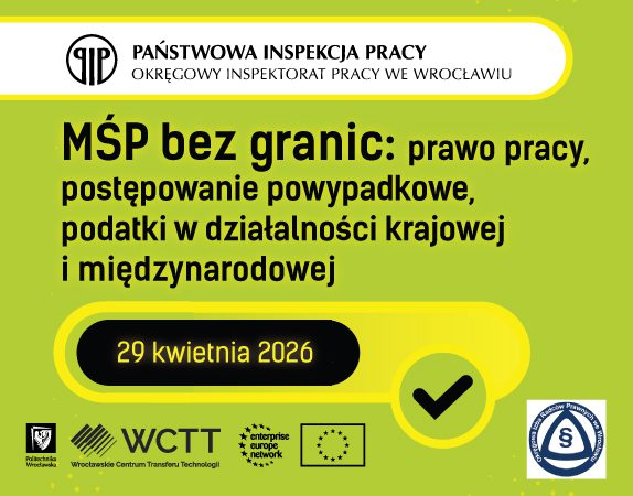 [:pl]Wrocławskie Centrum Transferu Technologii Politechniki Wrocławskiej w ramach projektu Enterprise Europe Network przy współpracy z Okręgowym Inspektoratem Pracy we Wrocławiu i Okręgową Izbą Radców Prawnych we Wrocławiu zapraszają przedsiębiorców oraz przedstawicieli sektora MŚP z województwa dolnośląskiego na praktyczne szkolenie stacjonarne, które kompleksowo obejmuje kluczowe zagadnienia związane z prowadzeniem działalności gospodarczej – zarówno na rynku krajowym, jak i w kontekście współpracy międzynarodowej.[:]