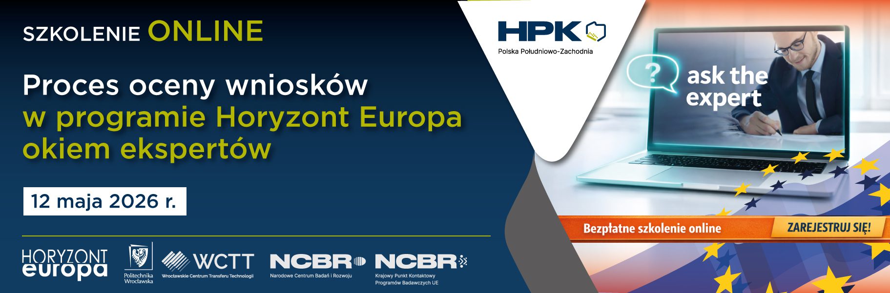 Chcesz wiedzieć, jak ocenia się wnioski w programie Horyzont Europa? Zostań ekspertem Komisji Europejskiej! Wrocławskie Centrum Transferu Technologii Politechniki Wrocławskiej wraz z Horyzontalnym Punktem Kontaktowym Polska Południowo-Zachodnia oraz Krajowym Punktem Kontaktowym Programów Badawczych UE (NCBR) zapraszają na bezpłatne szkolenie pt.: „Proces oceny wniosków w programie Horyzont Europa okiem ekspertów”. Wydarzenie odbędzie się on-line w dniu 12 maja br. w godz. 10:00 – 12:00